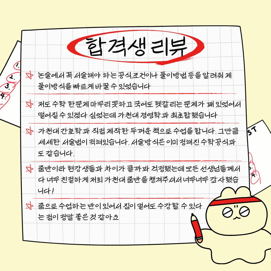이에 가천대 논술 및 약술형 논술을 열심히 공부하고 있는 재원생을 대상으로
