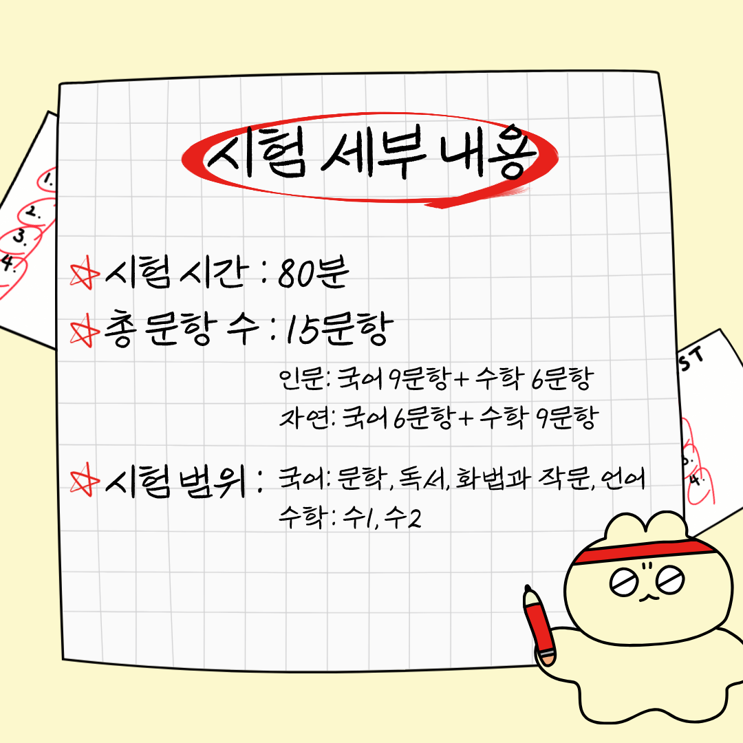 - 인문 : 국어 9문항+수학 6문항