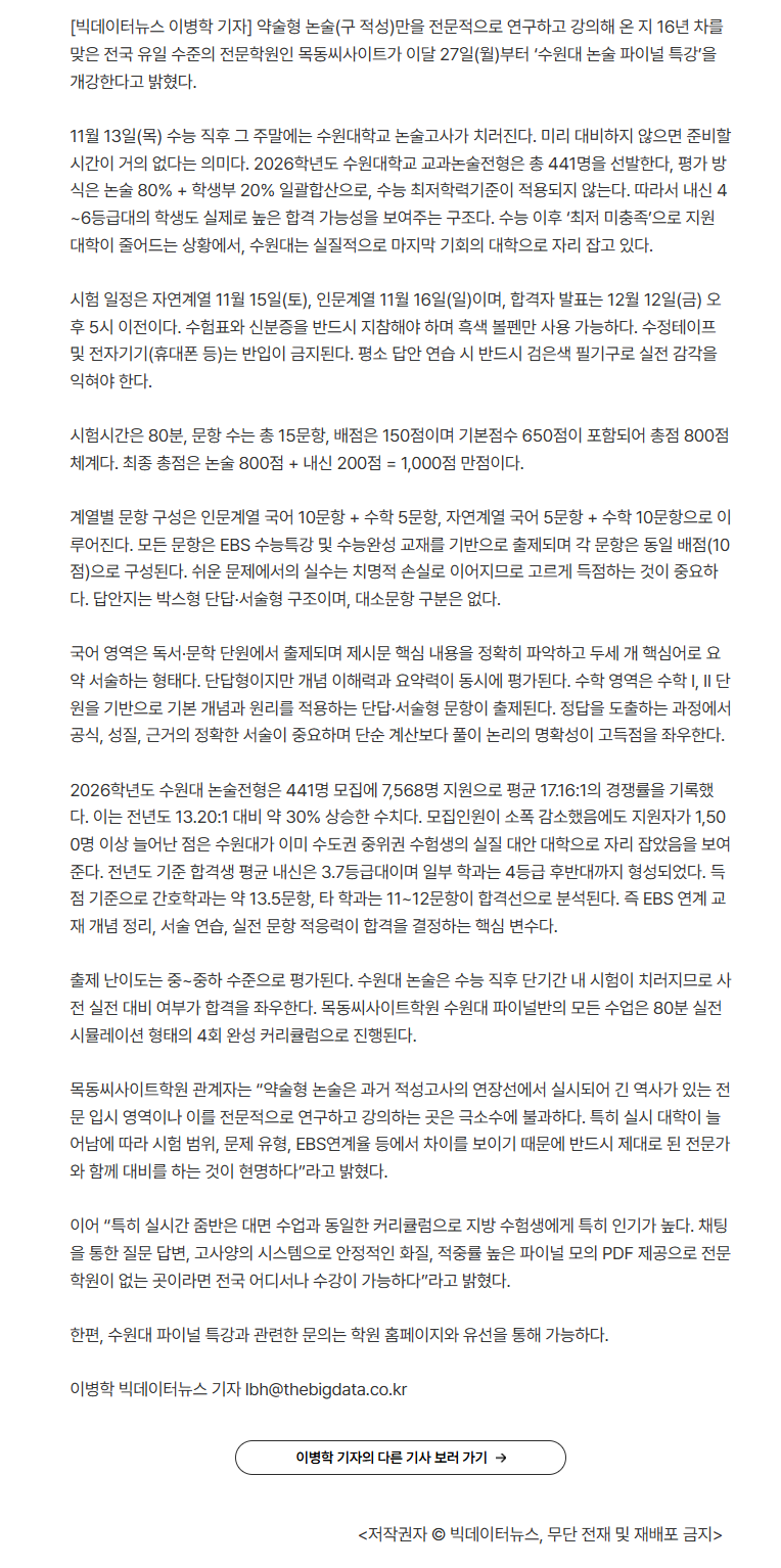 | 2026학년도 수원대 논술고사 유의 사항 (0) | 2025.10.06 |