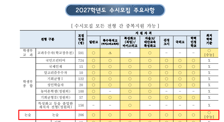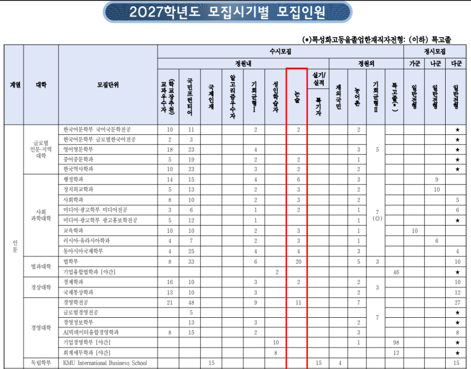 이번 글에서는 중상위권 예비 고3 학생 입장에서 꼭 알아야 할 2027학년도 국민대 약술형논술 전형에 대해 <2027국민대 대입전형계획 주요사항>을 바탕으로 지금 시점에서 어떻게 준비해야 하는지에 초점을 맞춰 설명해 볼게요. 단순 정보 정리가 아니라, 왜 지금부터 방향을 잡아야 하는지까지 분명하게 짚어드릴게요.