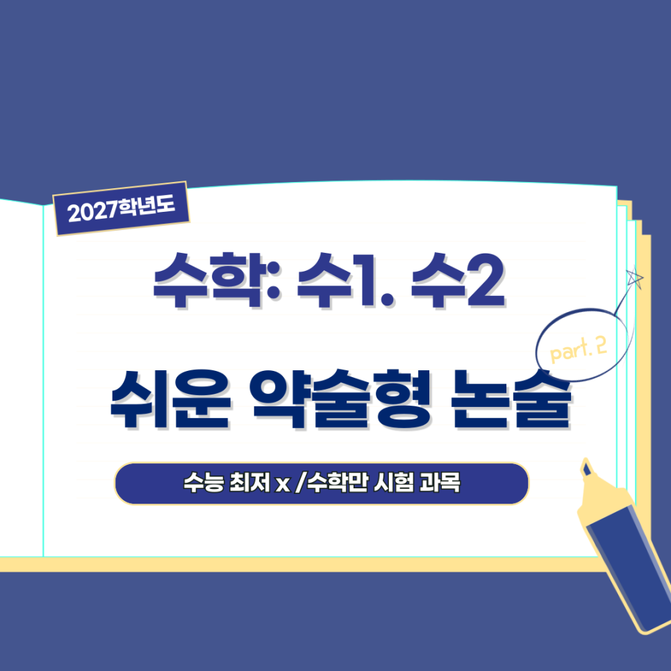 | 2027학년도 약술형 논술 대학 변경사항 등 주요 사항 정리! (1) (0) | 2026.01.23 |