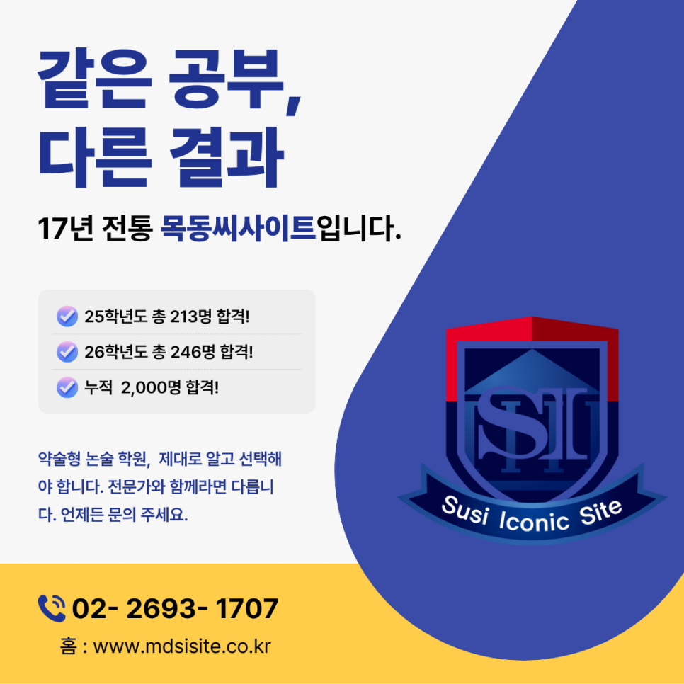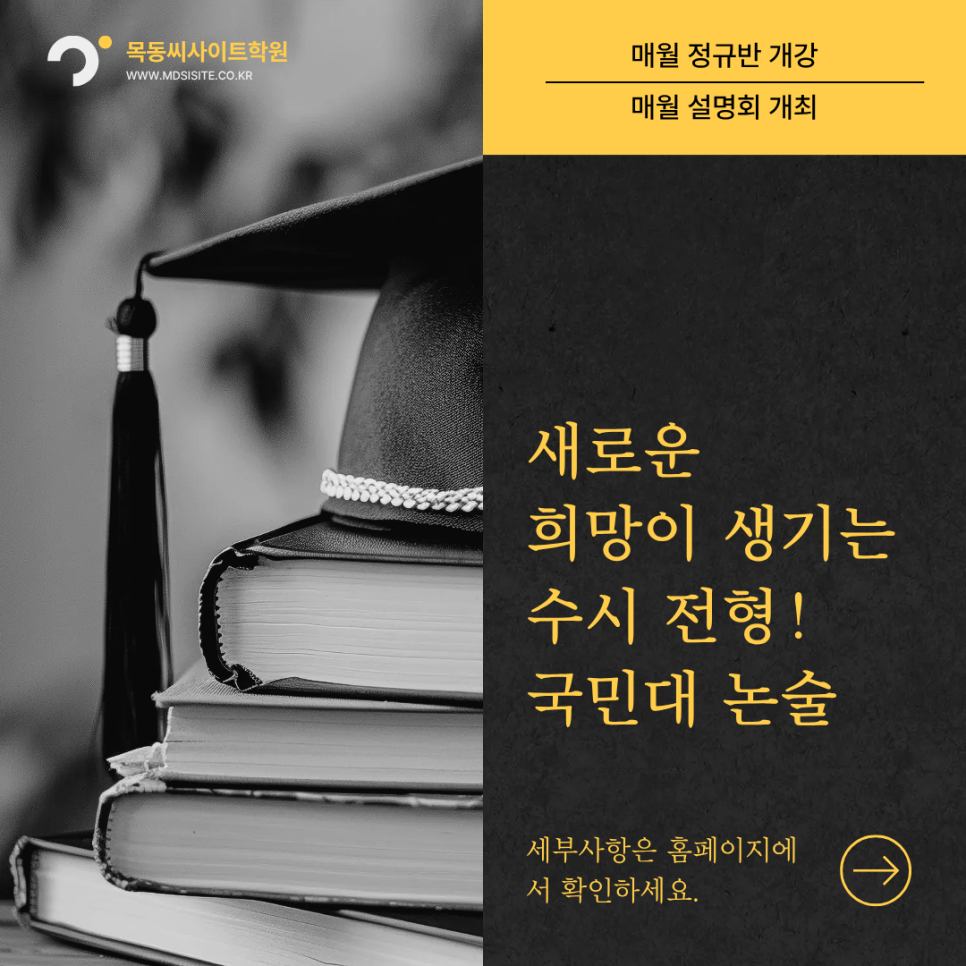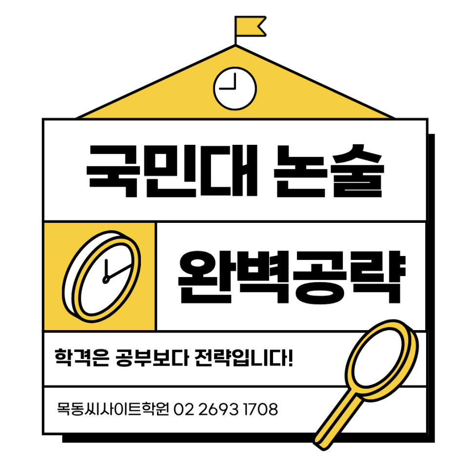 이 때문에 내신 2.5 등급이하 인 학생들, 교과로는 부담스럽고 종합으로는 방향이 애매한 경우 국민대 논술은 단순한 대안이 아니라 전략적인 선택지가 됩니다. 특히 시험 구조가 단답형·단문형 중심으로 구성되어 있어, 형식에 익숙해질수록 높은 점수를 받을 가능성이 높아진다는 점도 장점입니다.