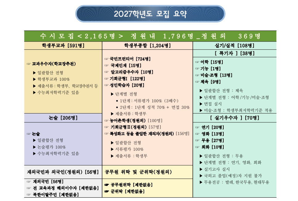 *위 포스팅은 2027 국민대 대입기본계획, 2025 국민대수시입결을 바탕으로 작성되었습니다.