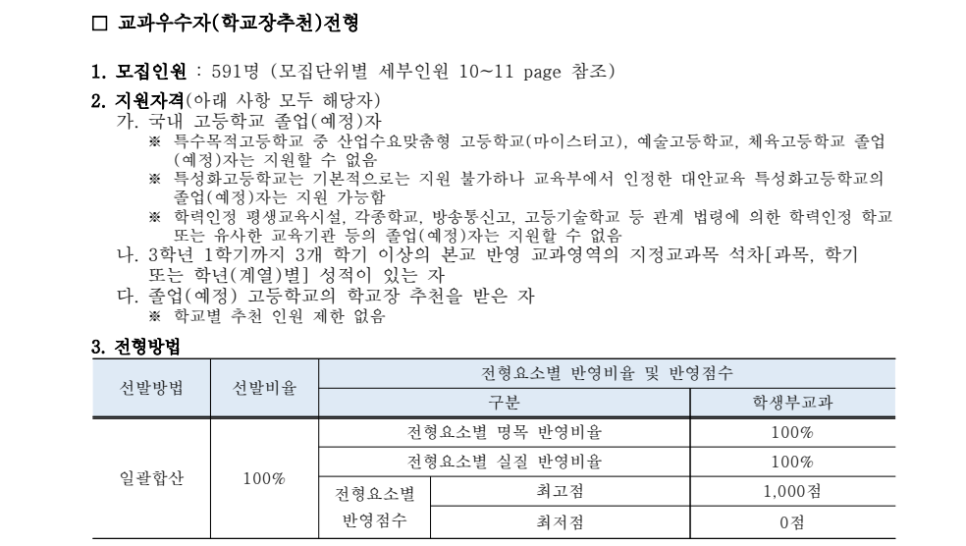 이로 인해 내신이 낮거나 수능이 불안한 학생에게는 리스크가 큰 전형이 됩니다.
