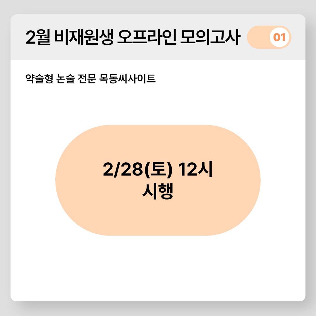 2027학년도 대비 2월 약술형 모의논술고사를 실시합니다.