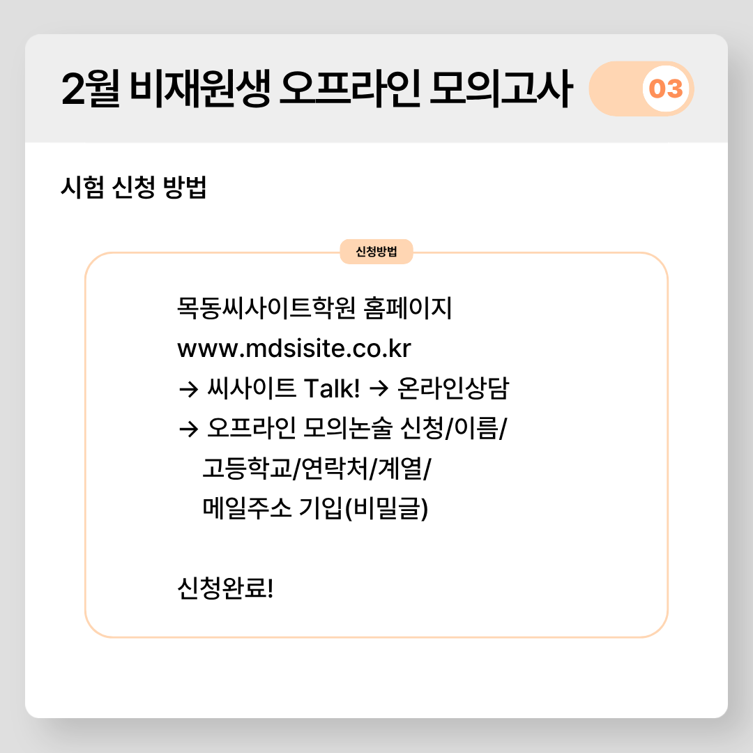 (오프라인 모의논술 신청/이름/고교명/연락처/지원 학과(계열)/메일주소 기입)