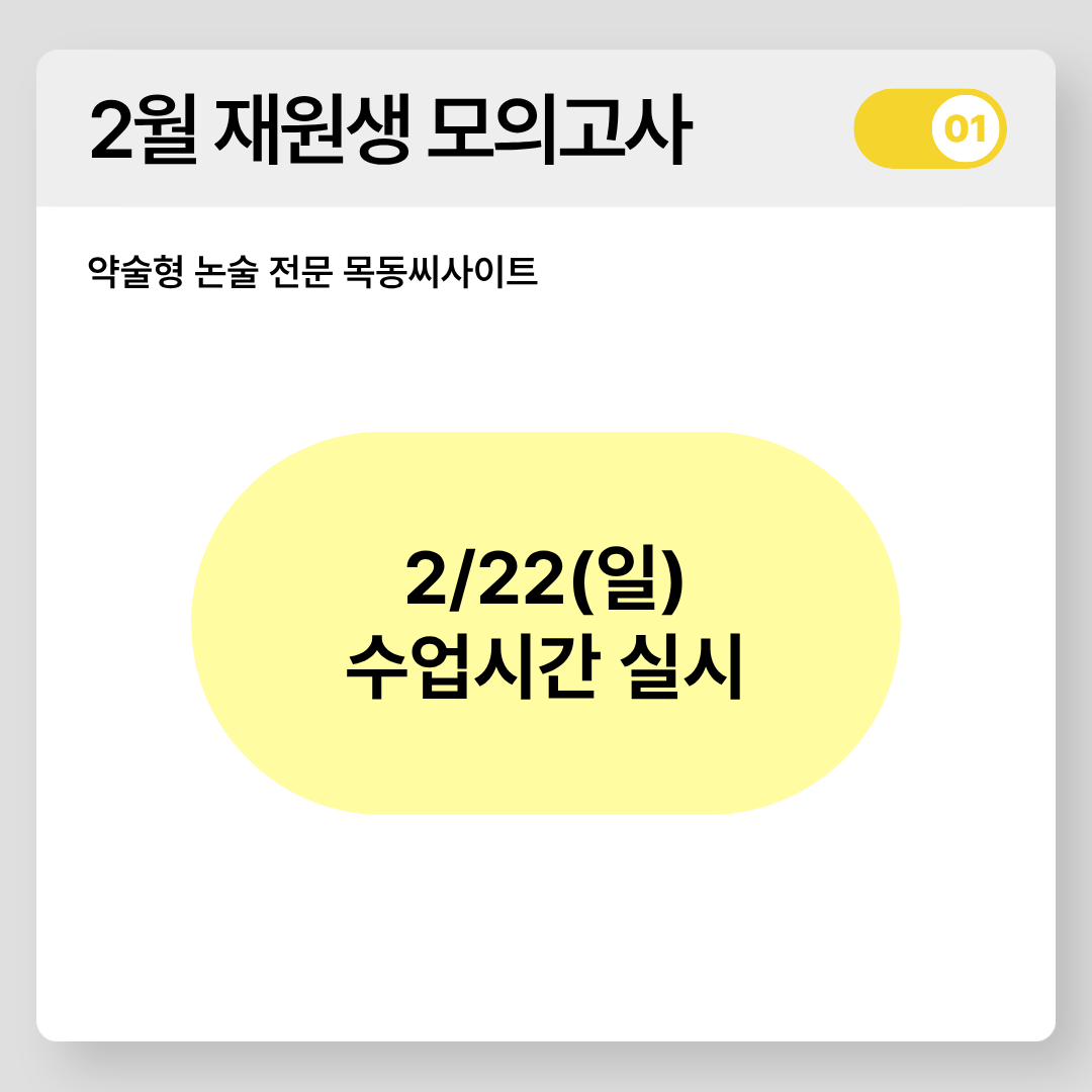 2027학년도 대비 2월 약술형 모의논술고사를 실시합니다.